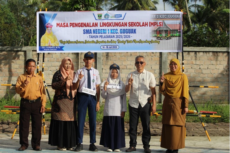 SMAN 1 Kecamatan Guguak telah melaksanakan kegiatan MPLS mulai dari tanggal 14 sampai dengan 18 Juli 2025. Kegiatan MPLS SMAN 1 Kecamatan Guguak hari pertama (14/7) adalah Upacara Bendera, Pembukaan Kegiatan MPLS yang dibuka secara resmi oleh Kepala Sekolah, Ibu Lisa Lazwardi, M.Pd., Penyerahan Murid Baru secara simbolis dari Wali Murid kepada SMAN 1 Kecamatan Guguak yang diwakili oleh Kepala Sekolah dan Ketua Komite, Sosialisasi Kurikulum dan Pengenalan Visi Misi sekolah oleh Ibu Reni, S.Pd. selaku Wakil Kurikulum, dan Sosialisasi Budaya Sekolah serta 7 Kebiasaan Anak Indonesia Hebat oleh Ibu Dra. Suzana Siregar, M.Si. selaku Wakil Kesiswaan SMAN 1 Kecamatan Guguak. Kegiatan dilanjutkan dengan pertemuan murid dan orang tua dengan Wali Kelas sekaligus melakukan perkenalan, pembentukan administrasi kelas, dan pengisian data murid yang kemudian ditutup dengan Peningkatan Pengetahuan Spiritual bersama Ustad Hanan Putra.
