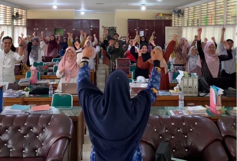 Antusiasme guru semakin terlihat dengan adanya hadiah sederhana berupa pena, gunting, dan tip-ex yang telah disiapkan oleh narasumber, sehingga seluruh guru tampak bersemangat mengikuti setiap kegiatan yang berlangsung.